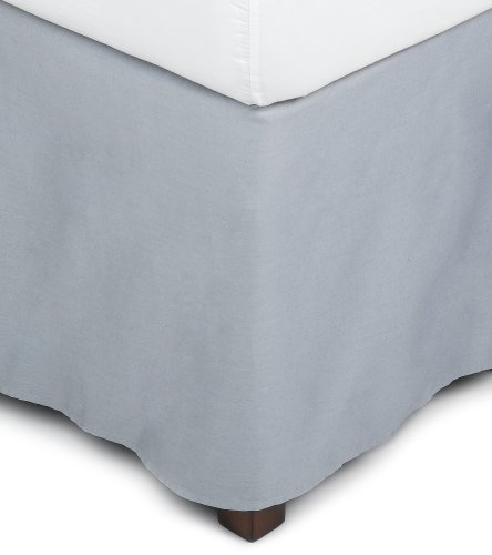 | Pinzon's Fleur Jacquard Egyptian cotton sateen bed skirt is an elegant base for any bed. Expertly made in Portugal from 100-percent Egyptian cotton single-ply yarns in a sateen weave, the bed skirt features a Chocolate underlay shining through the French Blue and creating a slight brindle effect. The bed skirt is a coordinating accessory to the Fleur Jacquard bedding collection, but can stand on its on to mix or match with many bedding sets and decors. Finished with decorative side pleats, the Fleur Jacquard bed skirt is offered in a choice of colors and sizes. The California King bed skirt measures 72 by 84 inches with a 16-inch drop, and it is safe to clean at home in the washer and dryer. The Fabric Sateen: Sateen fabric has a supremely soft, satin-like finish resulting from a four-over-one thread weave. Standard weaves, like percale, use a one-over, one-under stitch. The four-over weave puts more threads nearer the surface, resulting in a softer, warmer surface. Sateen fabrics are most often made of mercerized cotton, but can be made of other fabrics, including cotton blends, polyester, and rayon. Mercerized threads give sateen fabrics a higher luster. Mercerization, named for process-creator John Mercer, involves treating threads with a cold concentrated sodium hydroxide solution. Mercerization also increases strength, dyeability, and resistance to mildew, as well as reduces lint. Sateens can be produced in light and heavy weights, and are ideal for bedding. ...Read