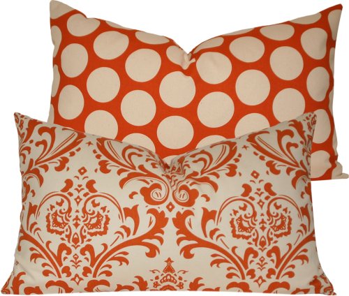 Orange Creamsicle Collection - 12"x20" Lumbar Decorative Throw Pillow Cover - Damask and Polka Dots - Orange and Cream Hues - 1 Pillow Cover, 2 Looks